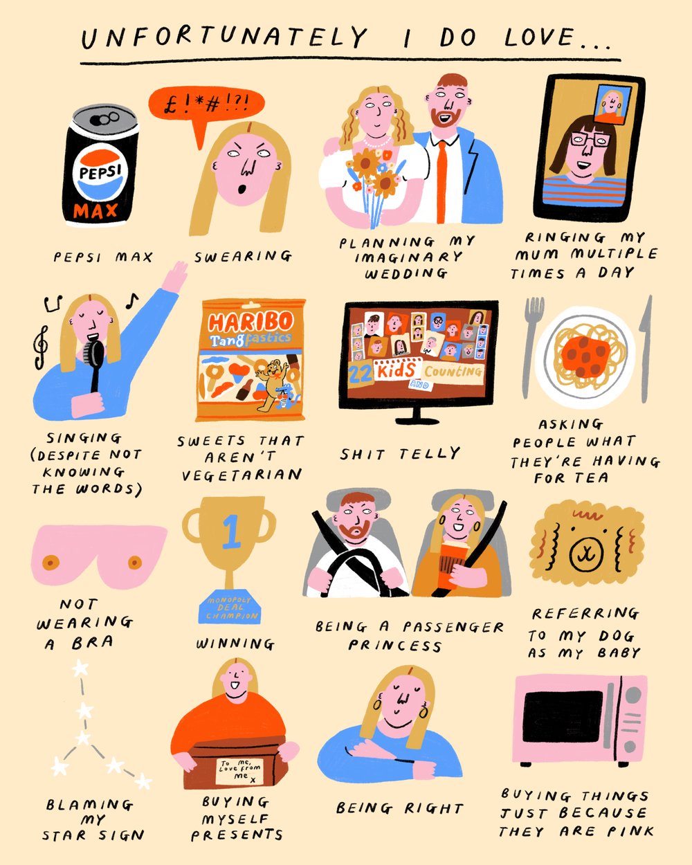Bespoke illustration featuring all of someone’s favourite things! A unique present for a friend or loved one.